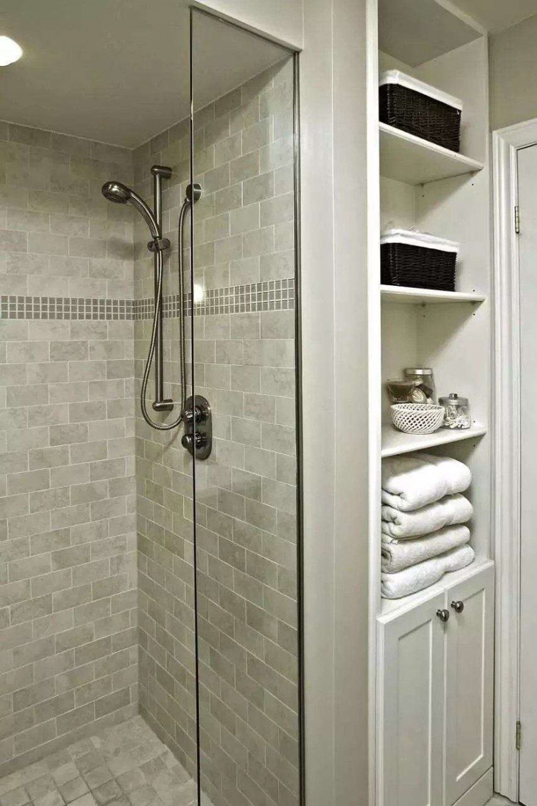 卫生间里可以放置隔板,方便收纳毛巾等洗浴用品!合理利用一些小角落,把东西集中放一块,空间在视觉上能变大很多。