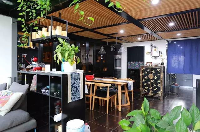 后者利用大小不一的柜子对客厅空间进行有效的分隔,