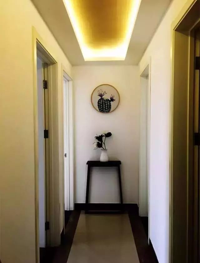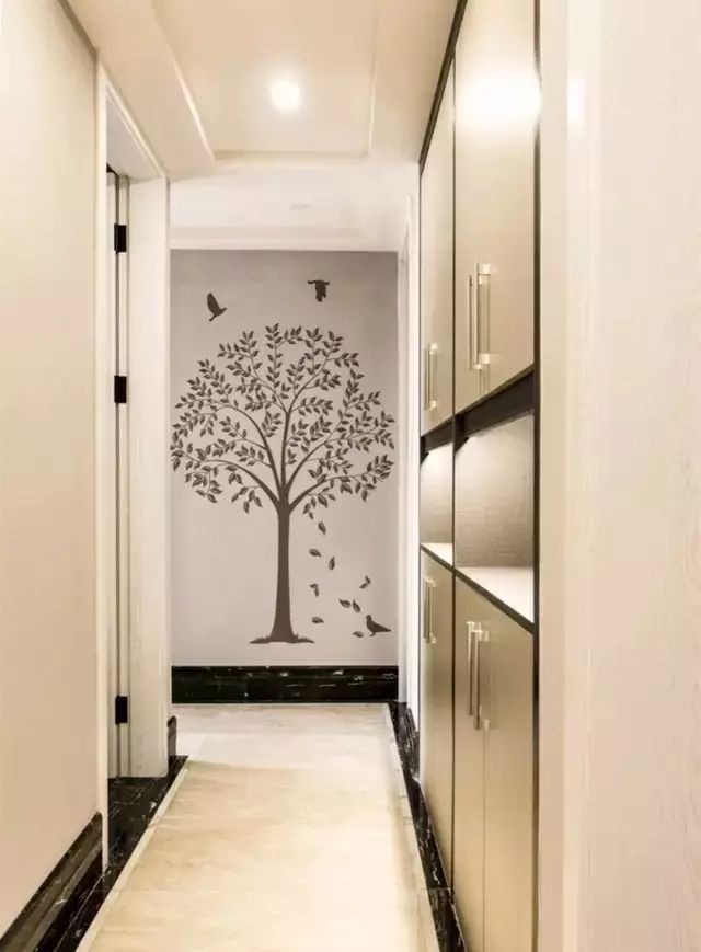 走廊除把装饰的重点放在墙面和地面外,走廊尽头的位置同样可以发挥你装饰小才能。如果走廊宽度比较窄的情况下,不妨只装饰走廊尽头位置。