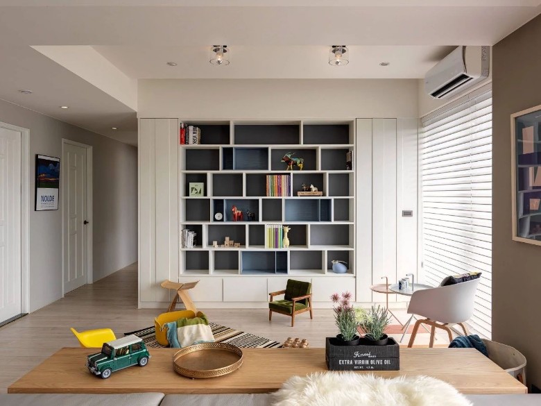 家里面积小,没有独立书房?那么可以利用电视墙作为收纳大本营。可以让大书柜取代电视墙的装饰柜。
