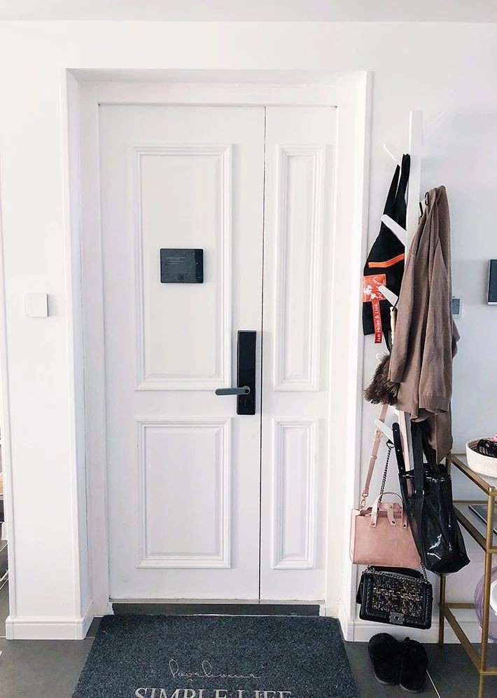 玄关是回家后进入的第一个空间,回到家后往往是要把帽子、围巾、小包包、外套等脱下来,而有个衣帽架的好处就是,可以顺手把它们都挂上去,避免回家的空间或沙发位置被堆砌得太杂乱碍眼,可以从细节处体现主人的优雅简洁气质。