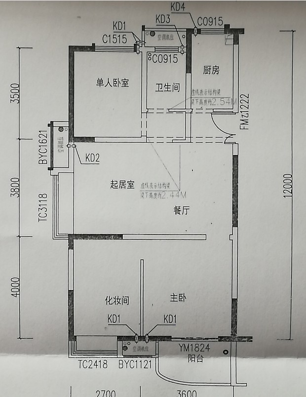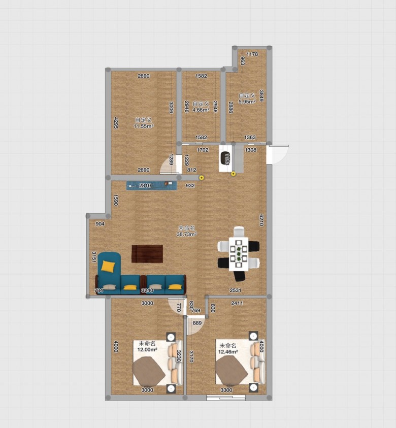 没有把户型图画全,不过没关系,布局就是这样了。有些细节需要精确的尺寸,你这户型图尺寸标的很粗糙。