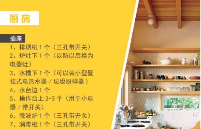 因为现在整个厨房电器越来越多。在设定厨房的插座的时候呢,有一个大的原则就是宁多勿少多了,总比少了好。建议大家都走水电之前,最好把橱柜的大概的一个方案确定好,这样的话你知道你整个台面未来的大概电器所放在的那个区域,这样是比较保险的做法!