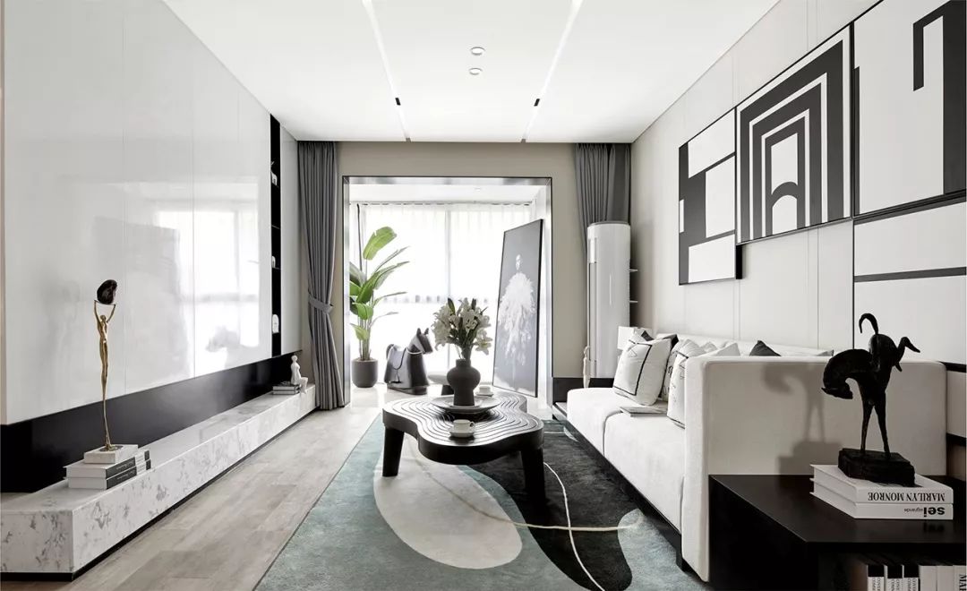 在黑白的客厅内饰里,艺术化的表达是重点。我们不拘于传统的陈设方式,随性的饰品摆放,自然舒适的空间情景,空间内流动的利落线条,以及富有情趣的物件点缀,营造生活的自由与纯粹。