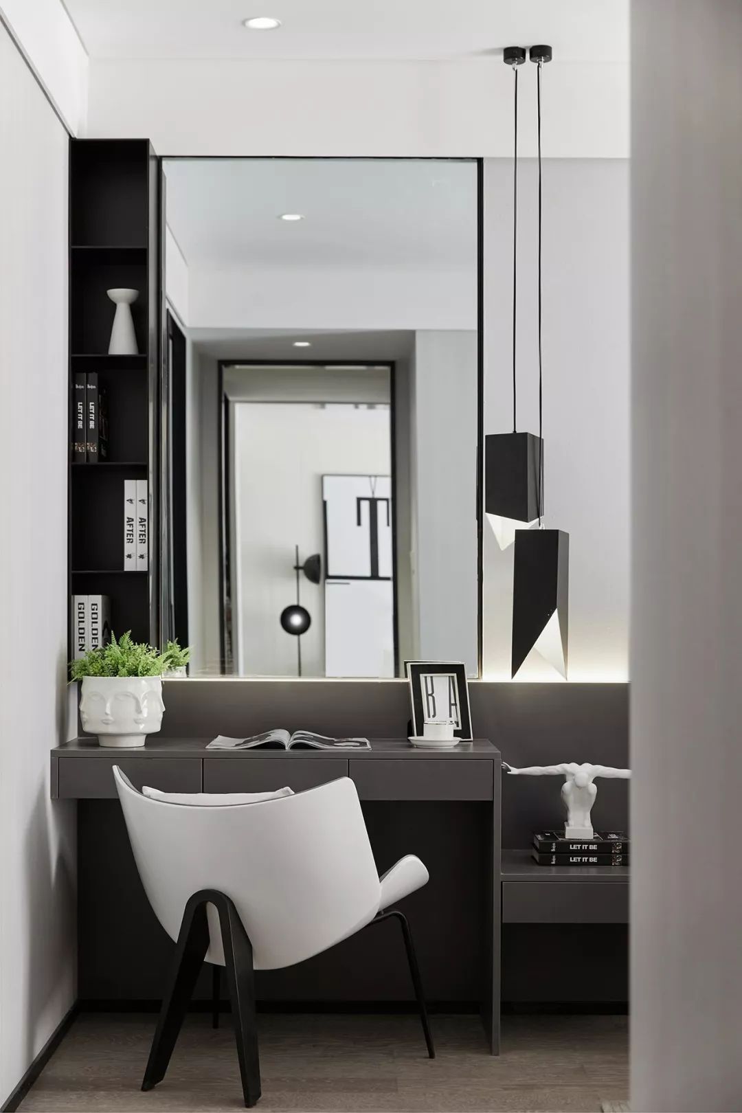 黑与白的极致对比平衡空间色彩,艺术化的物件形态没有繁杂精细的工艺修饰,摆脱传统的制式,一切都是原本自然的状态,在纯粹的空间内自由生长。