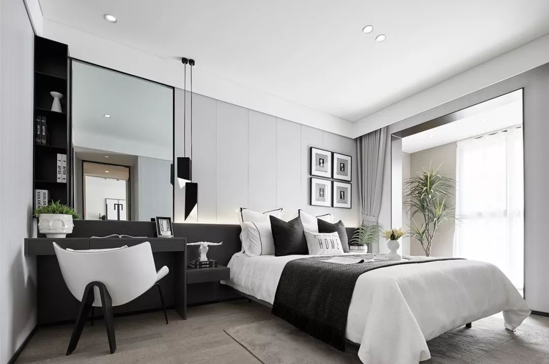 主卧延续纯粹的黑白调性,融合个性与艺术的家具,床品,配饰,在空间内表达对生活的的感受,触感自然舒适的床品,展露休憩空间应有的安逸。