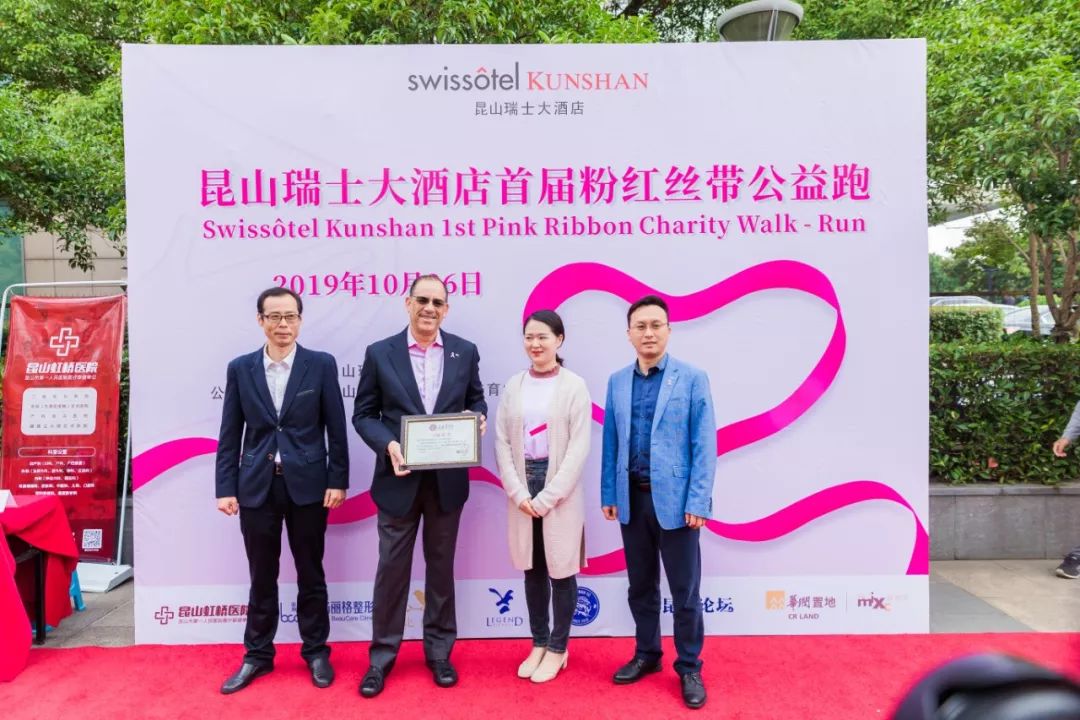 2019年10月26日, 昆山 – 昆山瑞士大酒店(业主公司TA Global Berhad,即TA GLOBAL)同昆山市爱德社会组织培育中心共同举办了首届粉红丝带公益跑活动,昆山论坛,昆山虹桥医院,昆山米杨丽格整形以及昆山万象汇作为合作伙伴共同参与并支持了“防治乳腺癌”的十月公益活动。近两百位客人于10月26日当天参加了这一公益跑。