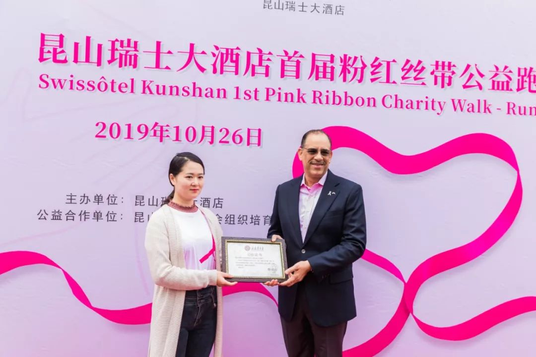 “即将步入的2020年是昆山瑞士大酒店成立作为昆山社区一份子的的第十五周年,我们选择以这样的方式回馈社区,支持这项重要的粉红丝带活动,希望引起大家对乳腺癌疾病抗争重要性的关注,它与我们都息息相关。”总经理李察兰尼表示,“昆山瑞士大酒店将在社区建设和企业社会责任活动中,承担更多更有意义的责任,积极传播正能量。”