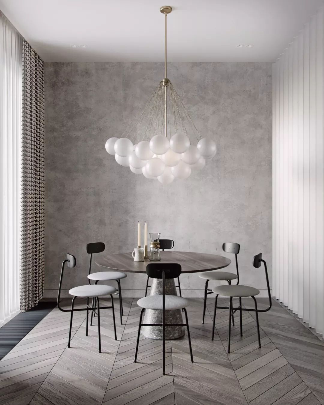 整个空间力求顺应材料的本质,在一刚一柔、一冷一暖中达到平衡,变化无穷又各有风骨,成就美观时尚又兼具朴素之美的家居空间。