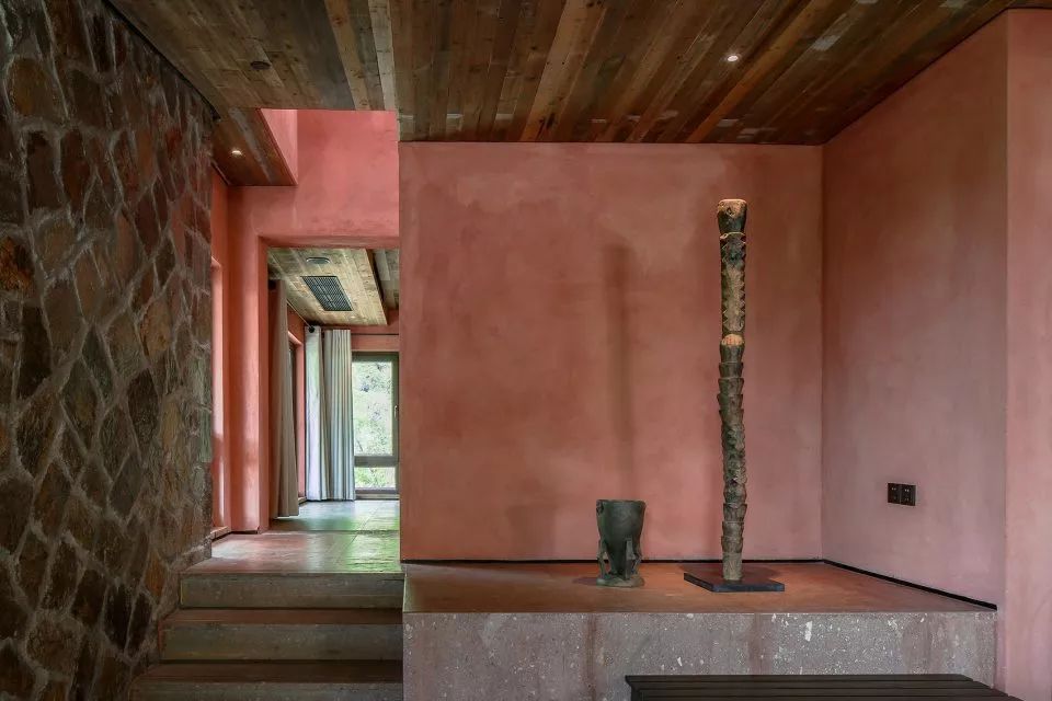 即便抛开审美层面,单从实用角度欣赏,天然材料的肌理也具有净化空气、防风降噪、调节湿气的作用,运用到冷冰冰的建筑之中,更是展现出非凡的生命力,处处充满暖意与灵性。