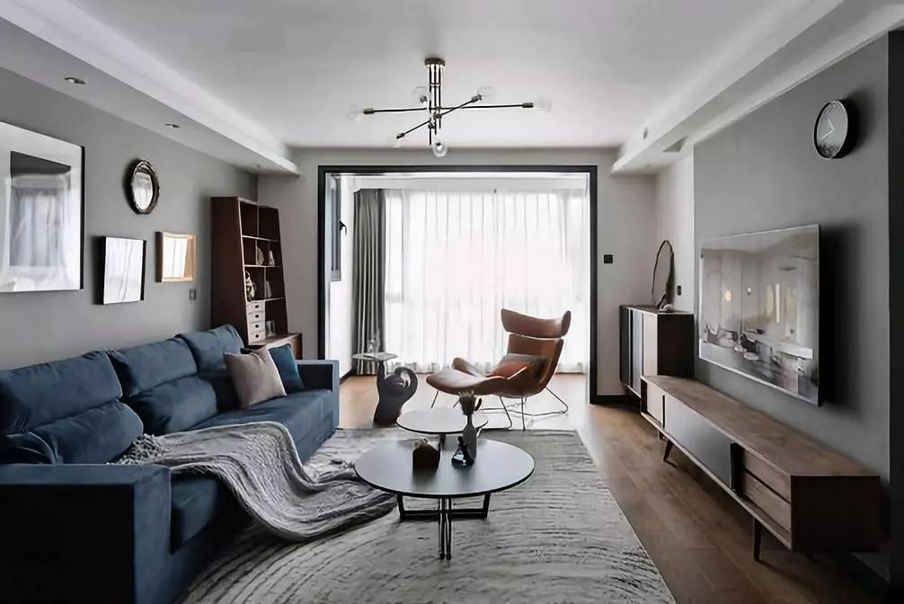 ▲在餐厅边上是客厅空间,整体以高级灰和白色为主,搭配复古感的沙发和电视柜、边柜等,让客厅展现出一种现代简约与轻奢风融合的感觉。