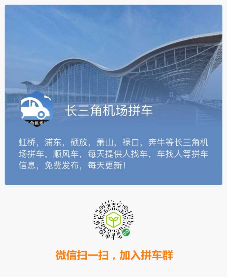 轻松出行,商务班车,机场包车,顺风拼车,欢迎关注“长三角机场拼车群”!寻找你身边的同路人,一起出发吧!