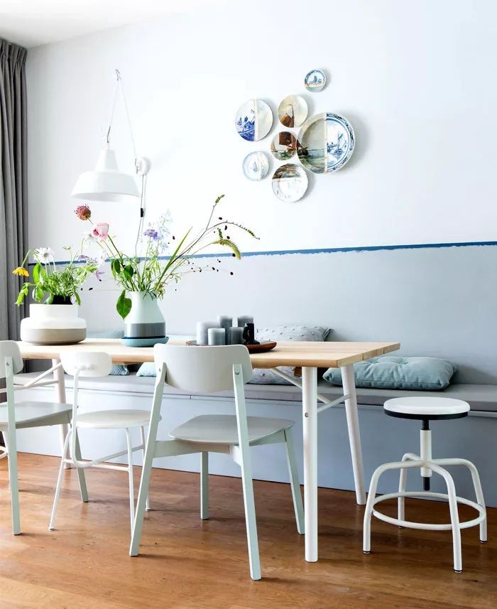 一般来说,人们会选择各种巨幅抽象画、色彩鲜艳的几何图形,或者简洁利落的线条勾勒做装点,再搭配原木桌椅和艺术灯饰,将充满情调的用餐氛围推向极致。