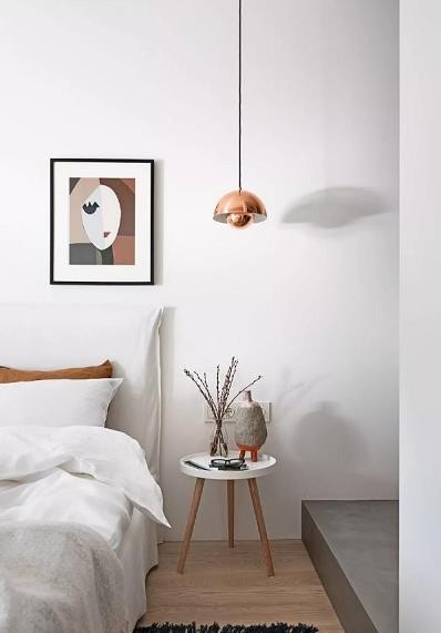 所以,大家会更多地利用大面积的白色、木色和其他纯色,来提升视觉和心理的舒适度,不容易有压迫感。而看似自然随意的灯饰点缀,也可以提供一些温馨柔和的光源,伴你安心入眠。