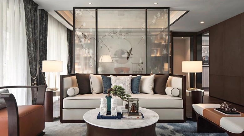 新中式餐厅的背景墙也不拘一格,可以依照主人的爱好和审美品位自由发挥。