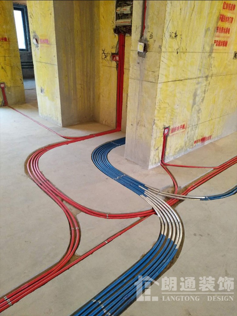 1.水管电线管交叉,采用电线管在上水管在下铺设。
