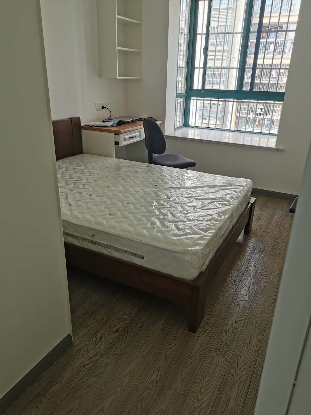▲这套房子只有两个房间,所以次卧除了用来睡觉,还需要兼顾书房的功能,所以在床边做了一个书桌,用来学工作,上面做了开放式书柜,平时放点自己喜欢的书籍或者饰品,也挺不错!