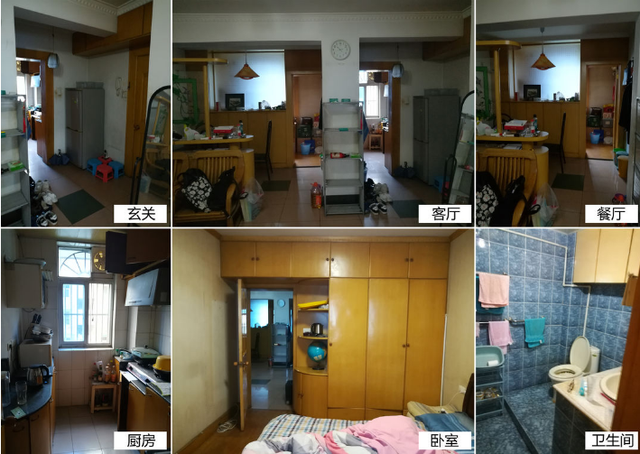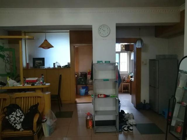 改造前客厅看向餐厅和玄关,第一感觉就是很乱,其次是采光通风不佳。