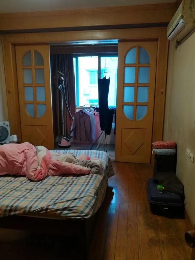 改造前的主卧,装修还是比较简洁,但是色调过于暗沉整个空间显得很压抑。隔断门设计,更是降低了卧室采光效果。