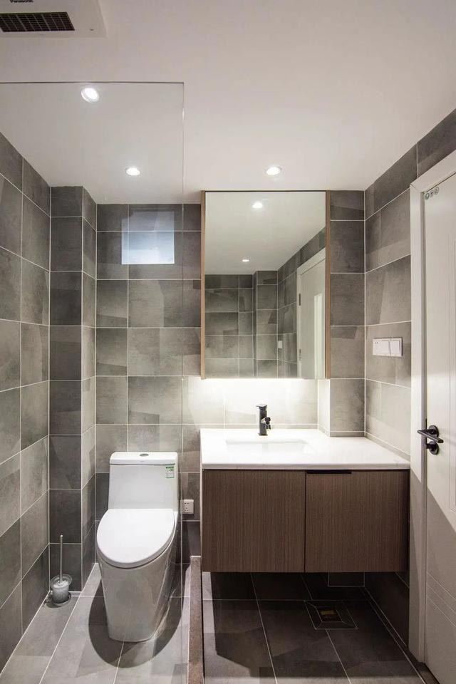 改造后的卫生间,整体简洁大气。镜柜和悬空浴室柜结合,解决了卫浴大部分收纳问题。洗衣机从卧室阳台移到了卫生间,布置外角落刚好不影响。淋浴采用开放式格局,拥有更大的活动空间,有了宝宝之后方便洗澡盆的使用。