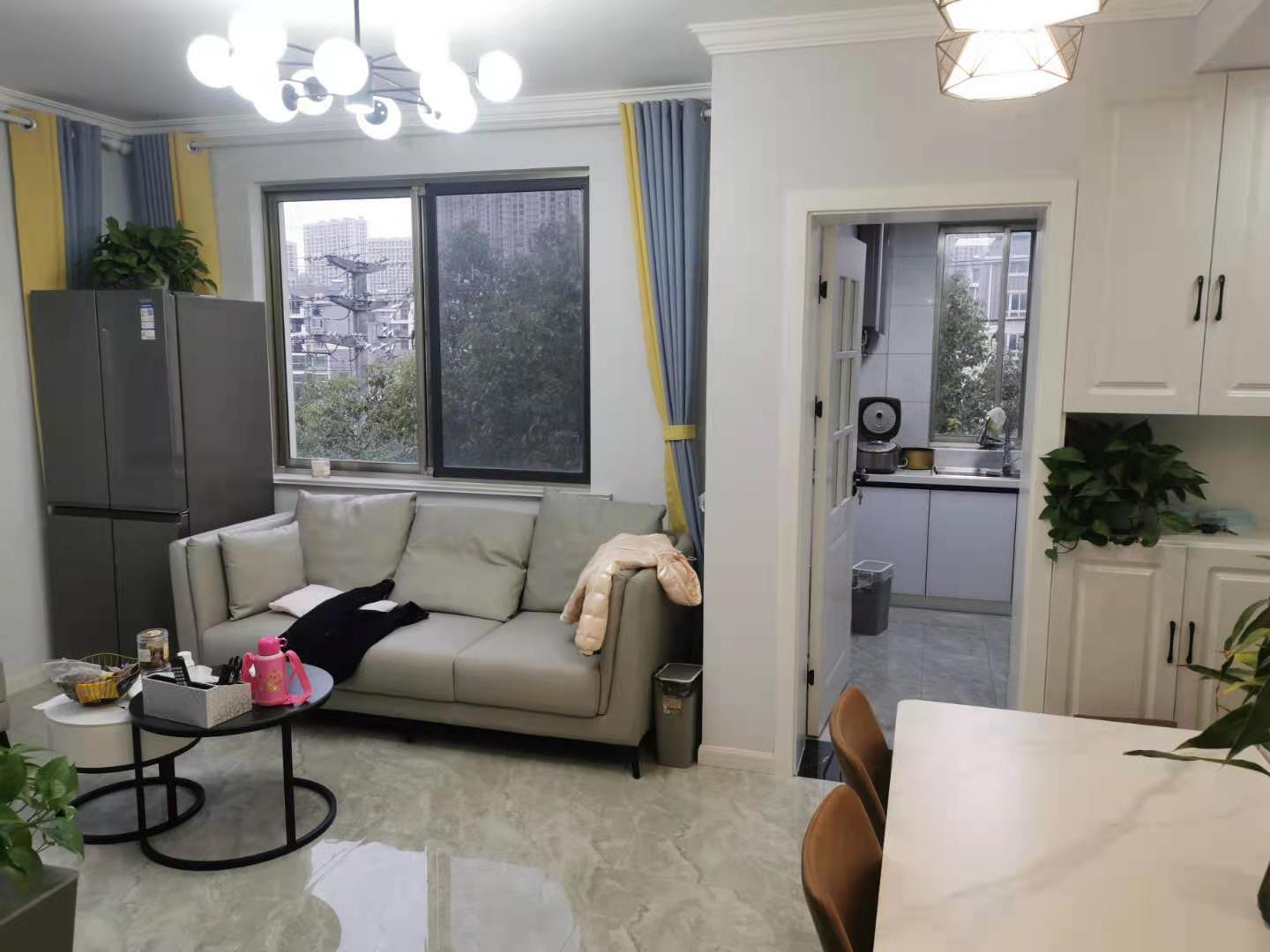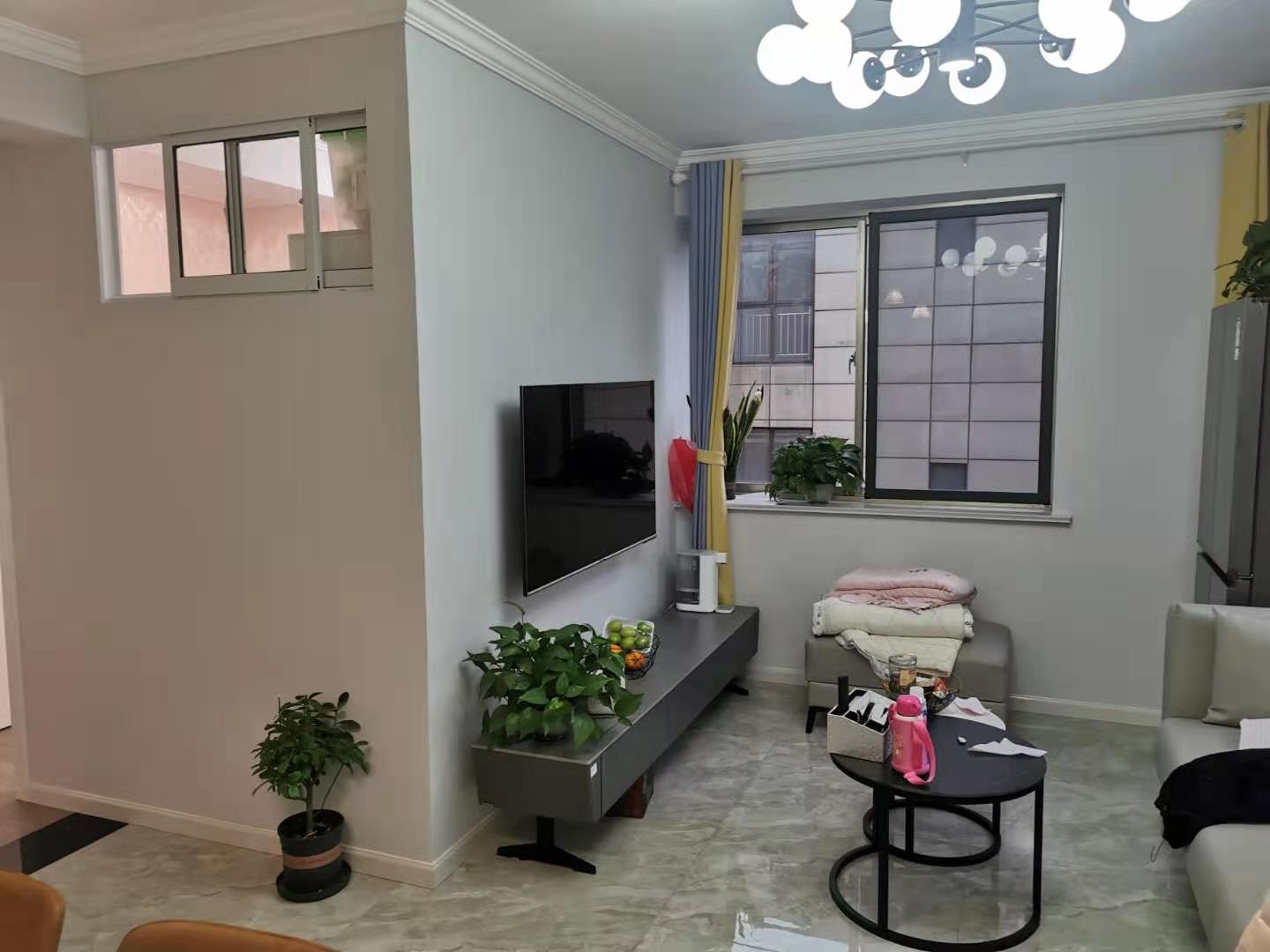 ▲往里走就是客厅,因为二房改三房,所以占用了一部分客厅空间,导致客厅面积变小。三人沙发精致实用。圆形错层小茶时尚又好看。