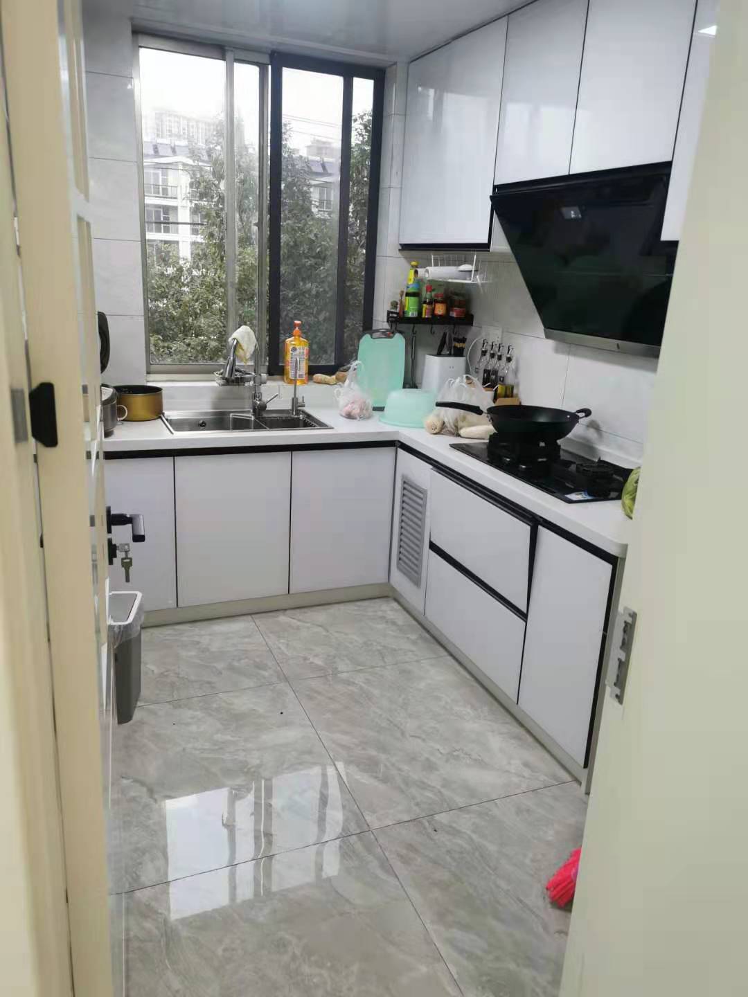 ▲厨房也是大量运用浅色,白色橱柜加上白色台面,显得厨房干净又整洁,也显得比较大。