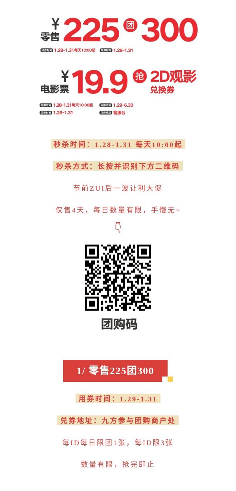 [活动]叮咚!春节津贴已到账~零售225团300,更享折上2折起,19.9秒电影票 [复制链接]