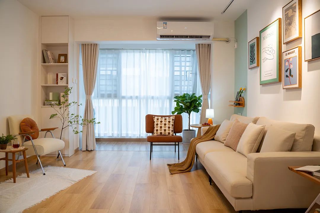 这是一套面积为92平米的三房,是一套旧房改造案例,屋主希望在家里多一些留白,营造出自由随心的空间家庭氛围。