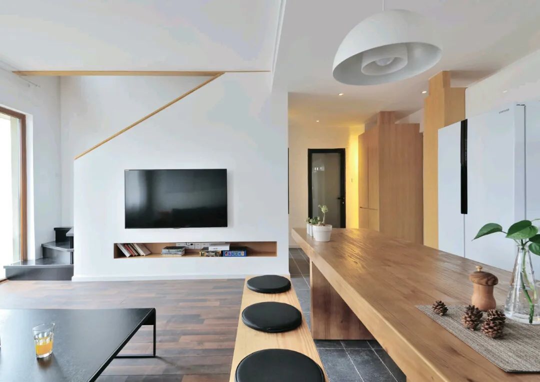 如果你想再省钱一点!大白墙肯定是首选~直接保留墙面原始的纯白色,既简洁又干净;