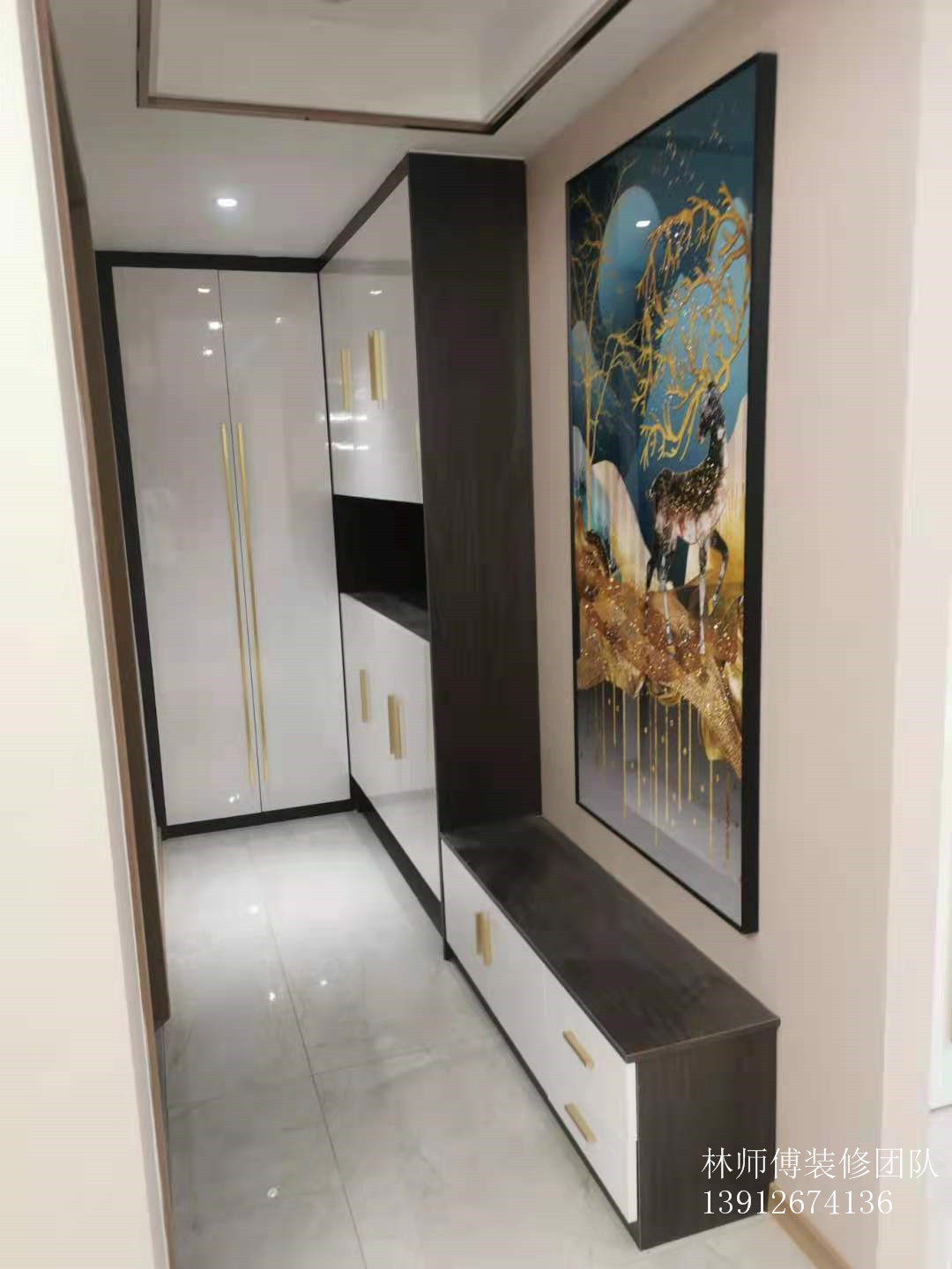 玄关处的功能相对比较齐全,有多功能组合鞋柜,储物空间非常丰富,矮柜还可以当换鞋凳使用,真的是美观又实用。还有一幅装饰画在玄关这,不仅装饰了玄关还提升了品位。