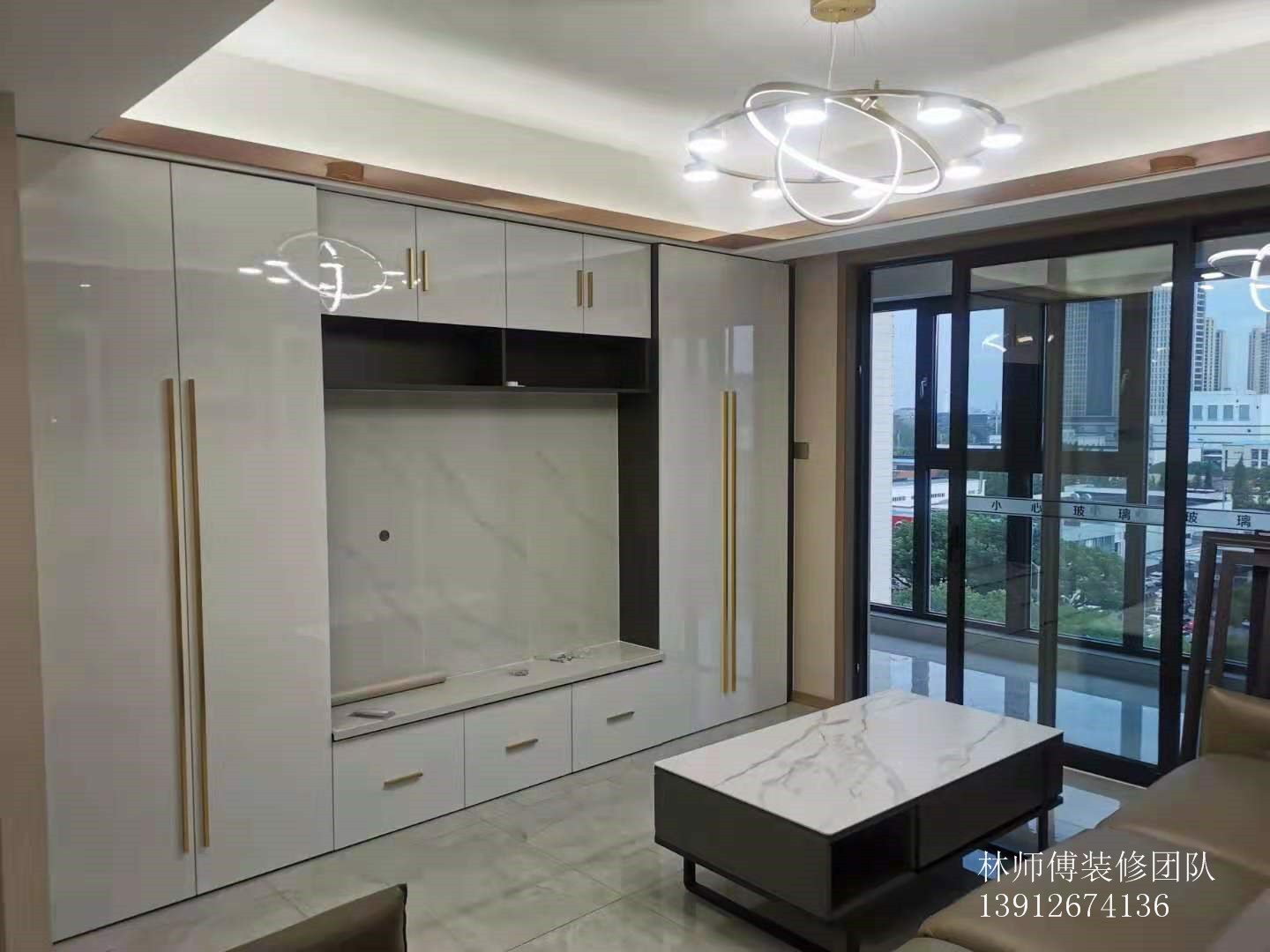 电视背景墙做了收纳式的,这样可以把电视背景墙全部的空间都给利用起来,收纳和颜值都有了。