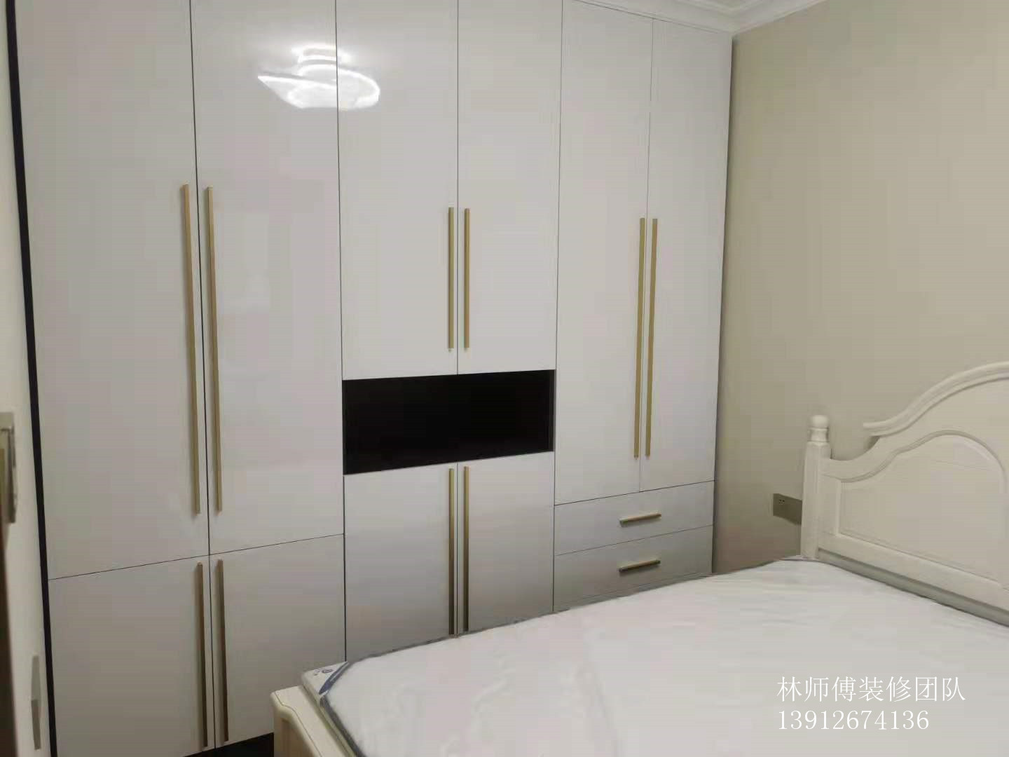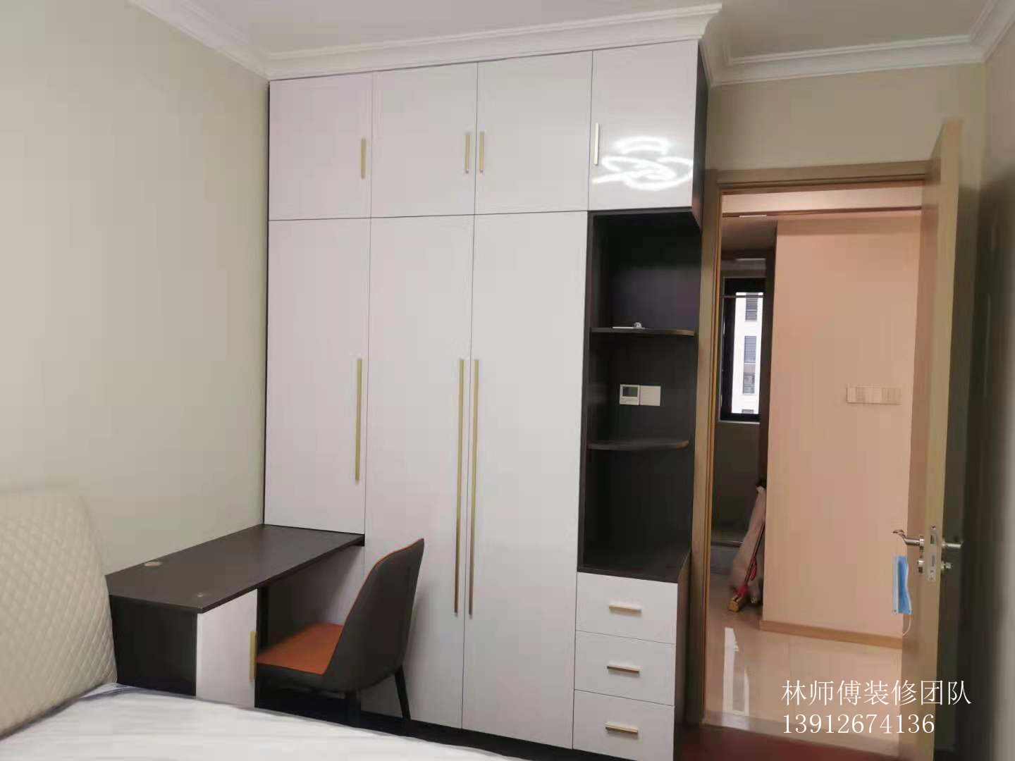 房间一,这个房间的衣柜白色搭配雅黑,实用性和美观度都很高。