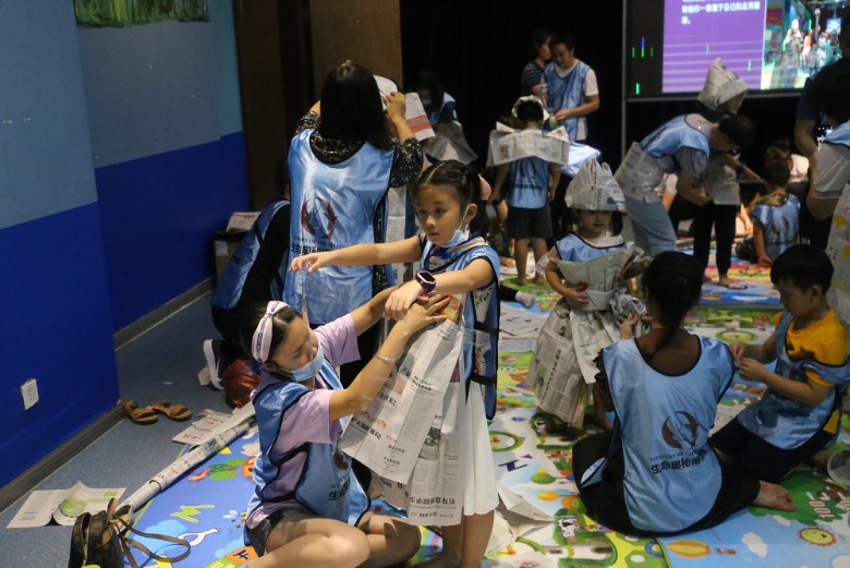 家长和小朋友齐动手,剪刀报纸加上一双灵巧的手,让报纸开始了它新的旅程,从文化的输出到艺术的畅想。