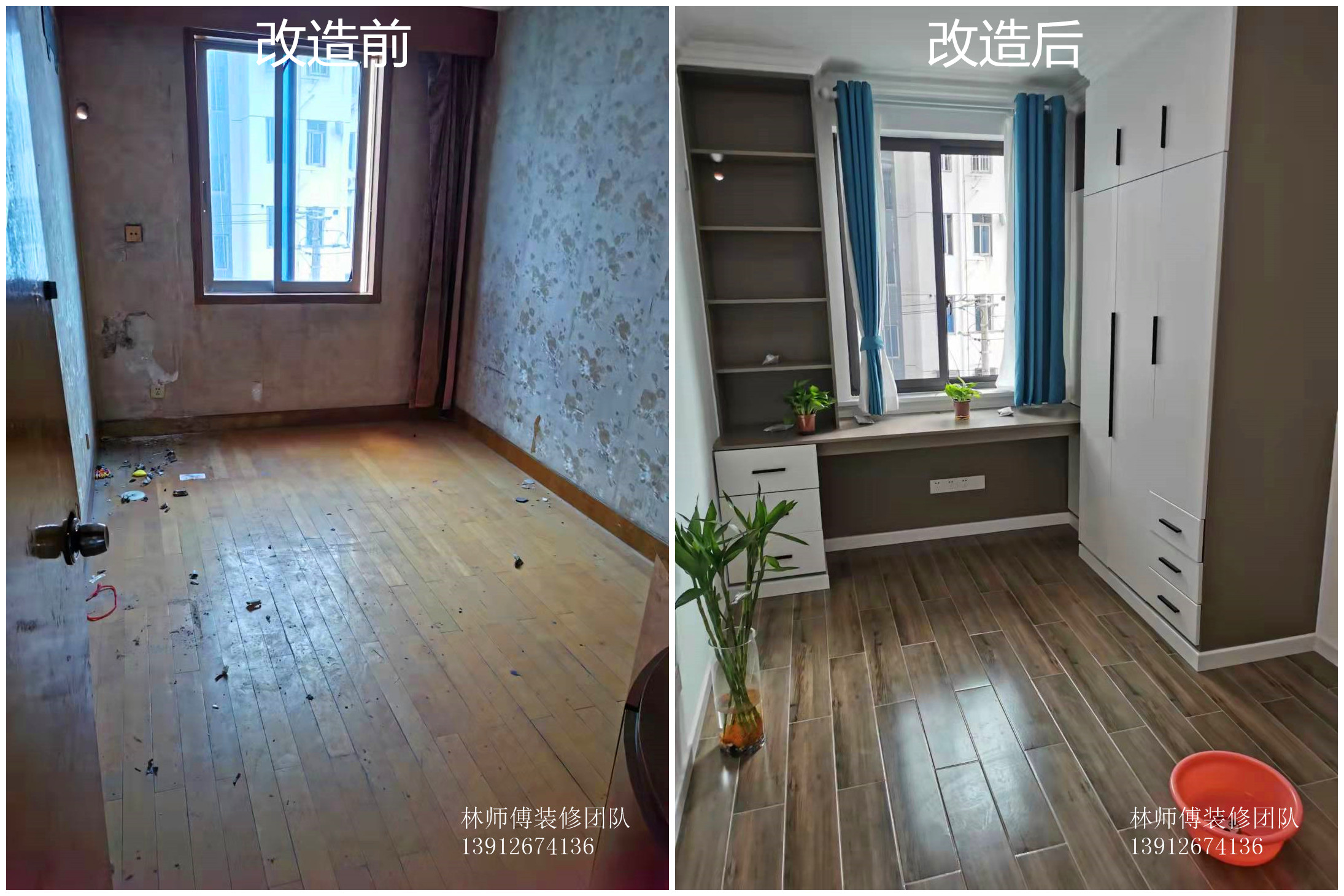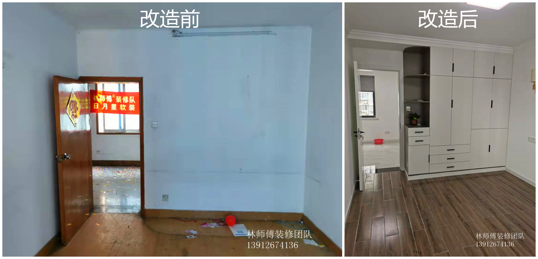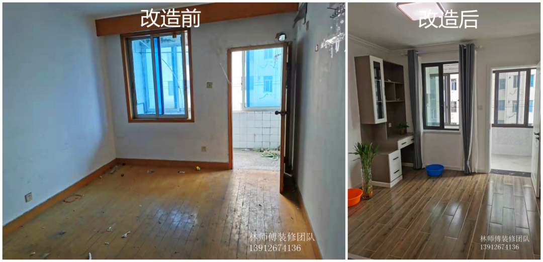 原来的卧室又老又破,也没有任何的橱柜来收纳,很多空间都白白浪费了。改造后的卧室就不一样了,房间的设计变得更加合理了。靠窗处设计了一个书桌,不管是办公学习还是充当梳妆台都非常棒。门口处,设计的是到顶衣柜,能装修不少衣物,收纳能力杠杠的。