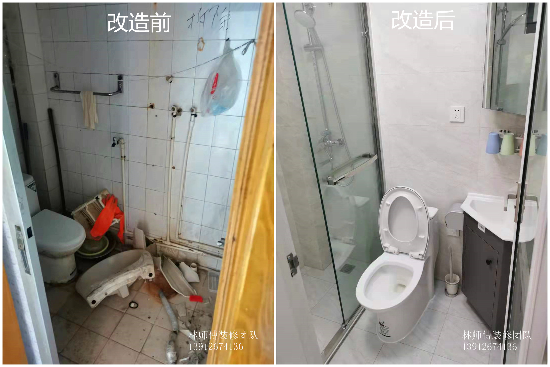 原来的卫生间,瓷砖、地砖都黄了,水管也都是外露的,特别不好看。而且洗漱都在一起,设计不合理,使用起来很不方便。改造后的卫生间,干湿分离,清爽干净,功能性也更加全面。转角洗漱台,节省空间,镜面柜也能收纳更多。