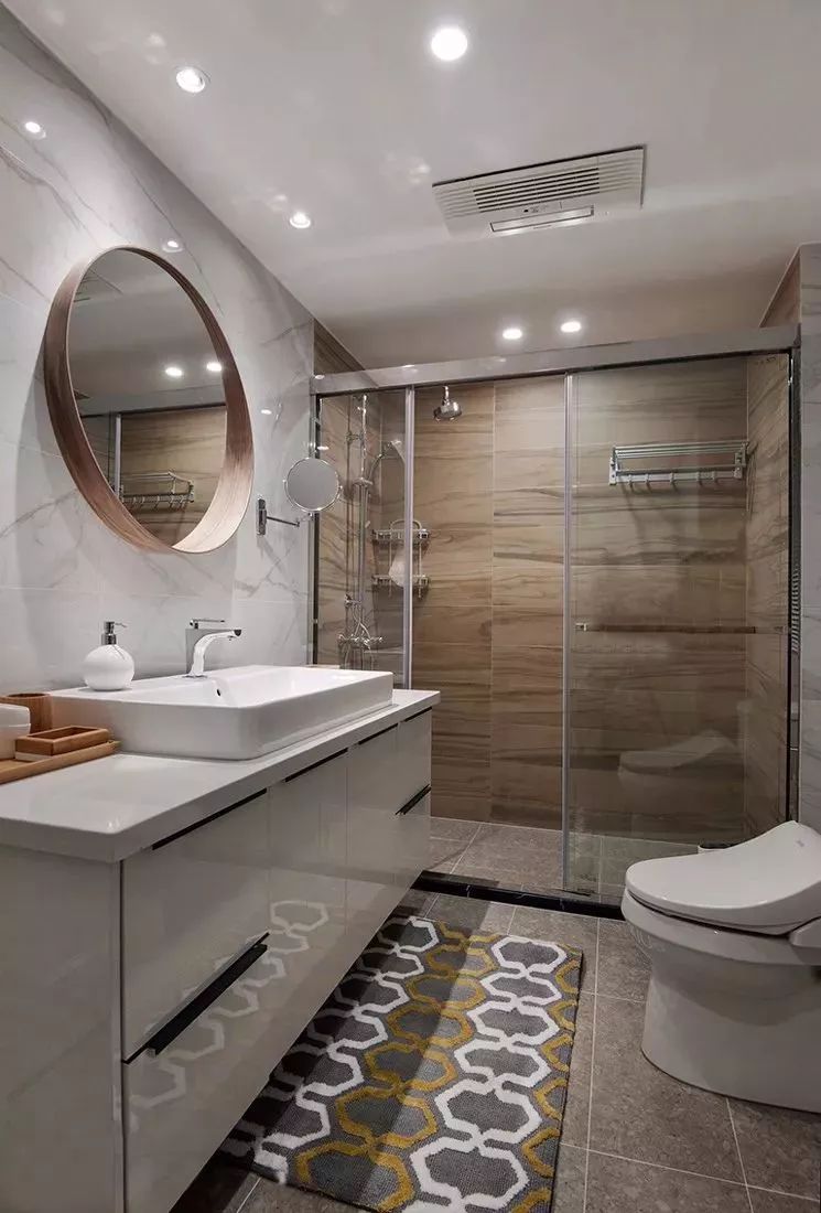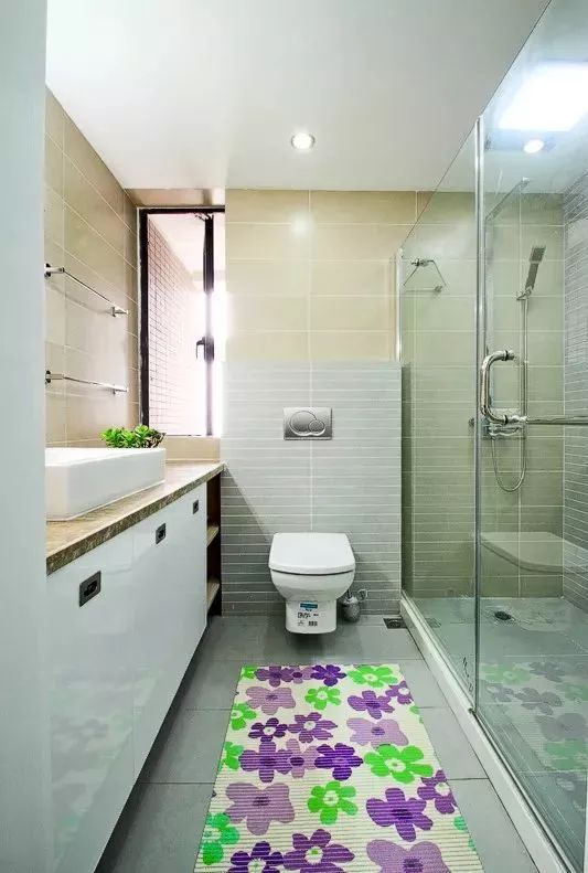 而且玻璃隔断可以说是百搭的款式,任何风格的卫生间都可以用玻璃隔断,比起其他复杂的大理石、木质隔断好多了。