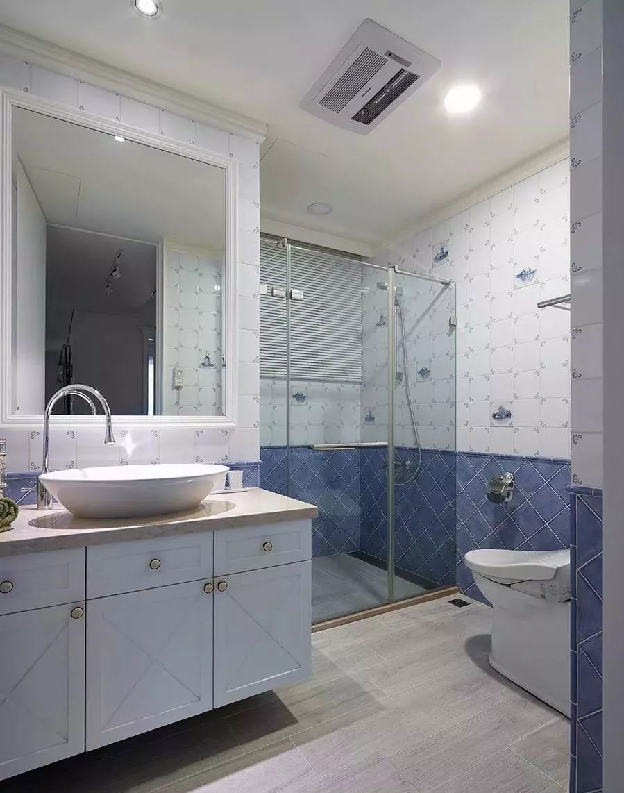 玻璃隔断可以让淋浴区和其他部分分开,把干湿分离做到位,又是通透明亮的,可以让光线透过,卫生间看起来就不会那么小。