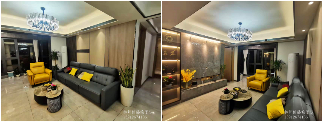 原本空荡荡的房屋,经过改造后瞬间就不一样了,现代风格经典时尚,灰色系列搭配金属元素,轻奢感满满,真的是非常大气好看。