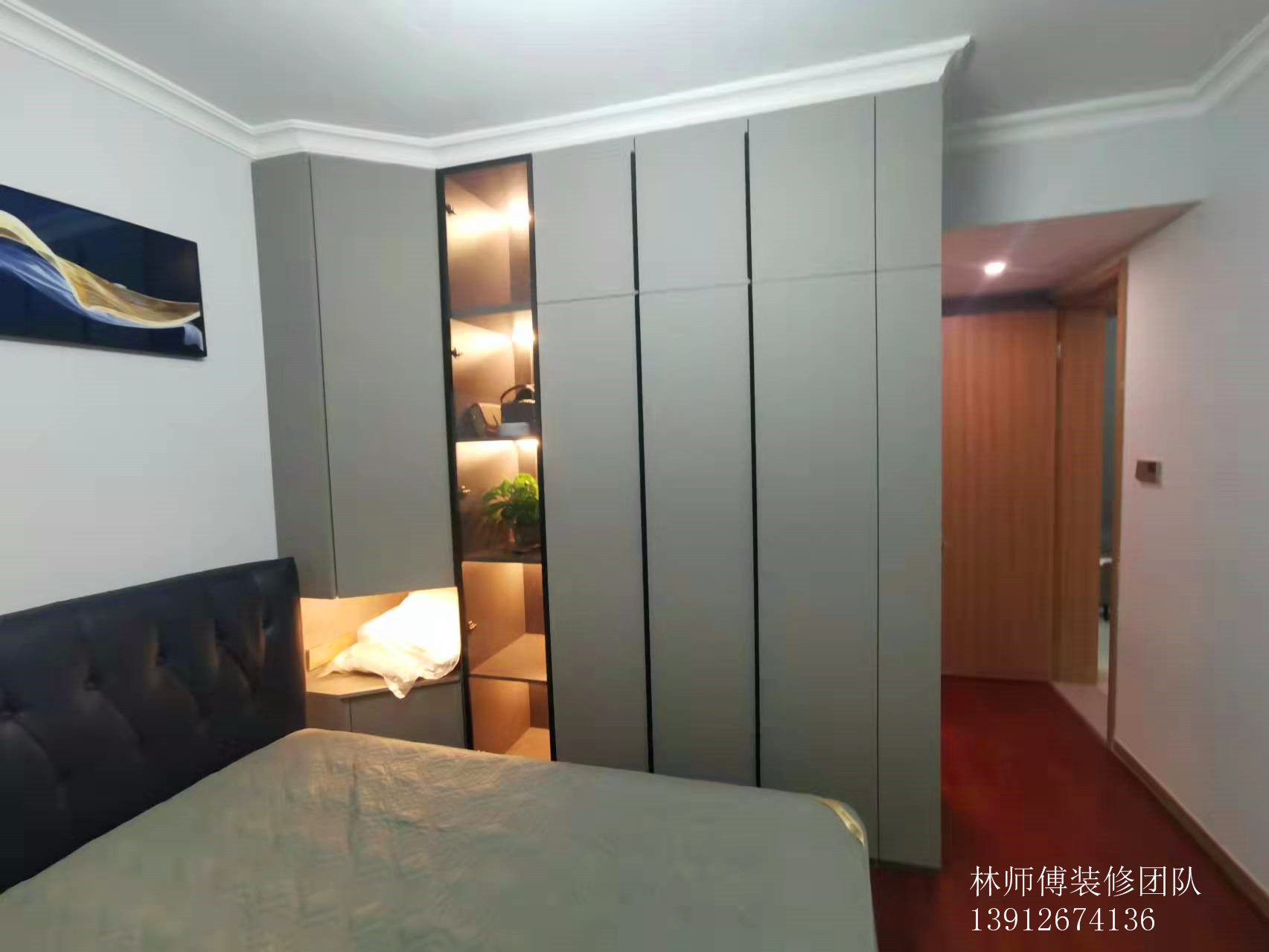 主卧的设计也是非常温馨的,衣柜延伸至床边,代替了床头柜,中间留空部分可以用来放手机,水杯、书籍等,暖暖的藏光,让房间更加温馨了。