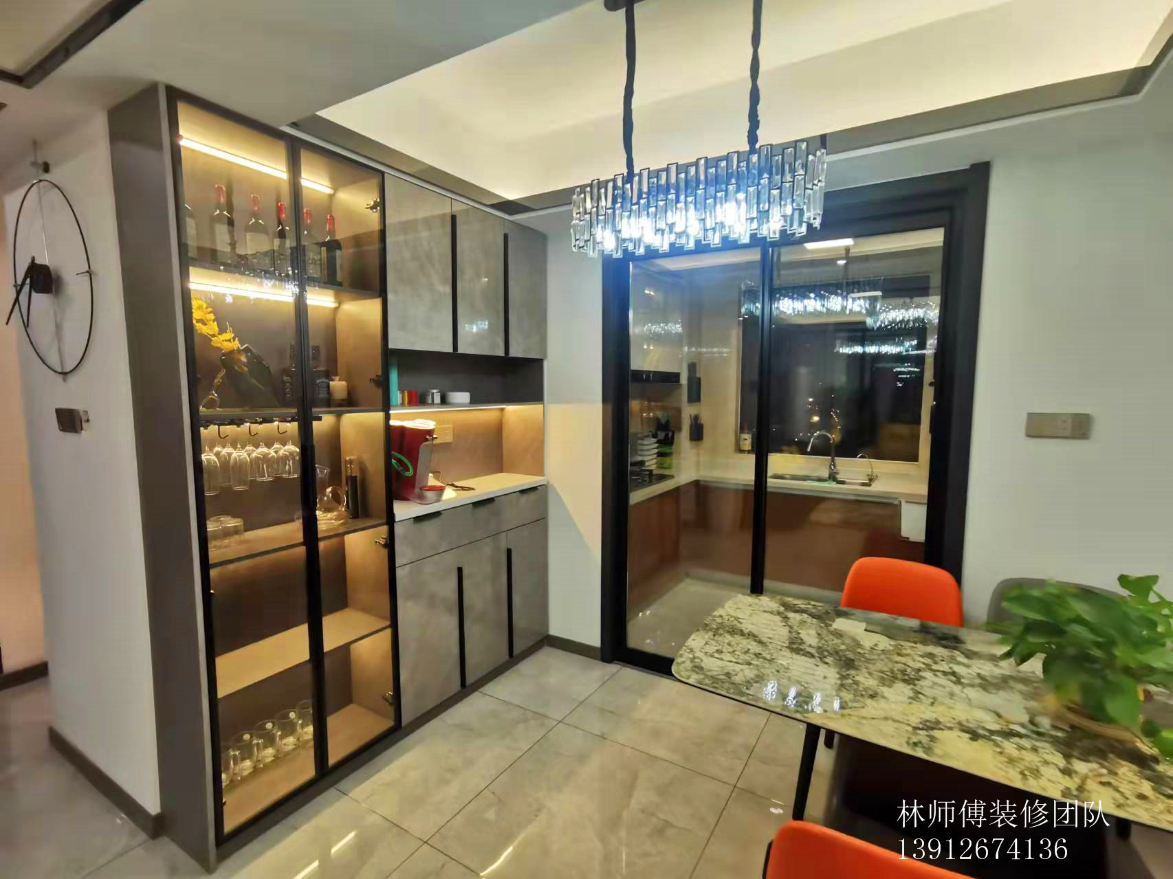 餐厅也是,大理石细脚餐桌简约时尚,呼应客厅风格。餐边柜除了柜子外,还设计了酒柜,酒柜也是玻璃㕑门+藏光设计,非常好看、非常高级,餐桌靠墙房,释放出更多活动空间。