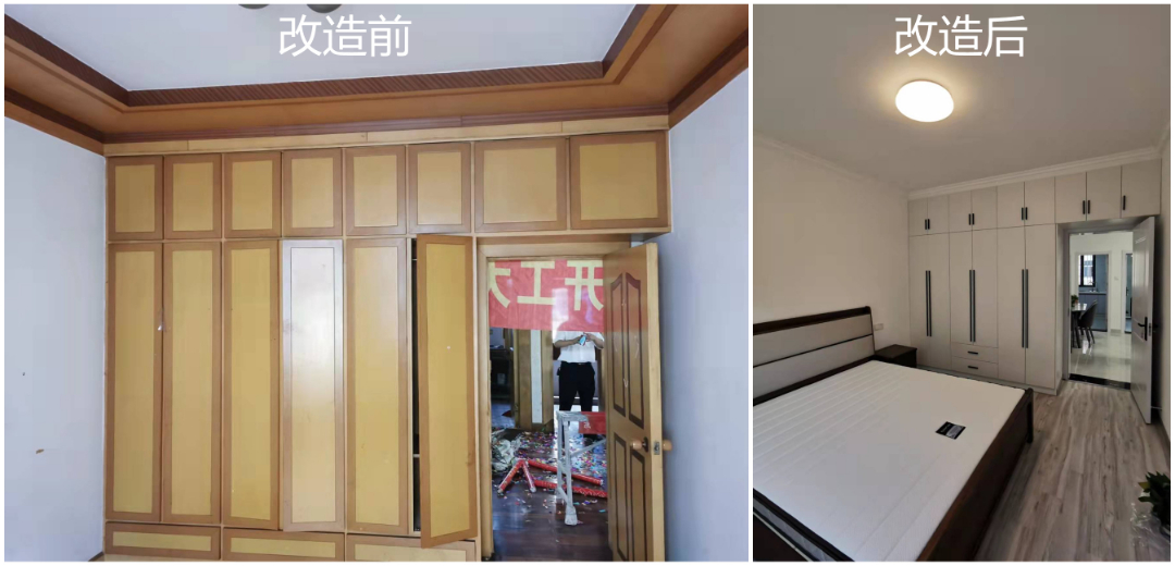 卧室也是一样的,原本的吊顶既厚重又不好看,改造一下后简约又大方。