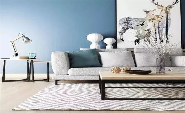 米 色、灰 色 + 蓝 色 :蓝色也是北欧风的经典色 ,靠近海洋的地理位置使北欧人在家居风格上运用了大量蓝色▼。