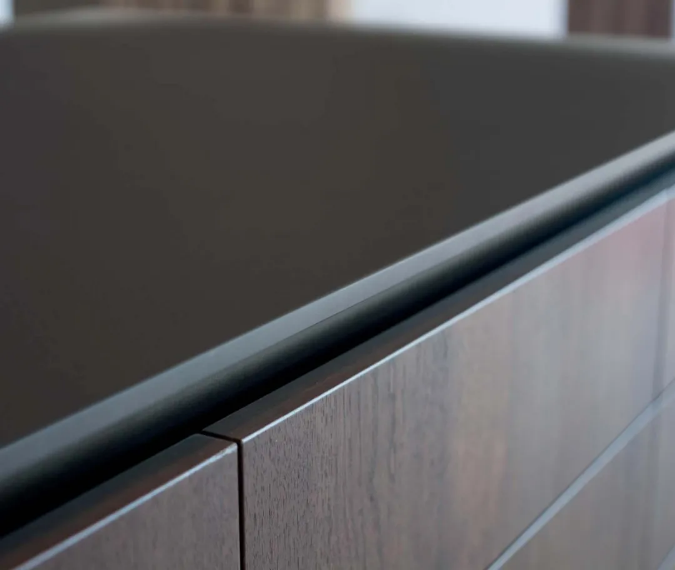 岩板台面具有良好的耐高温性能,台面高温明火灼烧而不显露痕迹,也不会散发任何气体或气味,无甲醛,零释放,可直接接触食材。不仅如此,岩板还具有极高的硬度承受能力,一般刀具无法损伤表面,可以直接作为食物加工的工作台,也不容易藏污纳垢。
