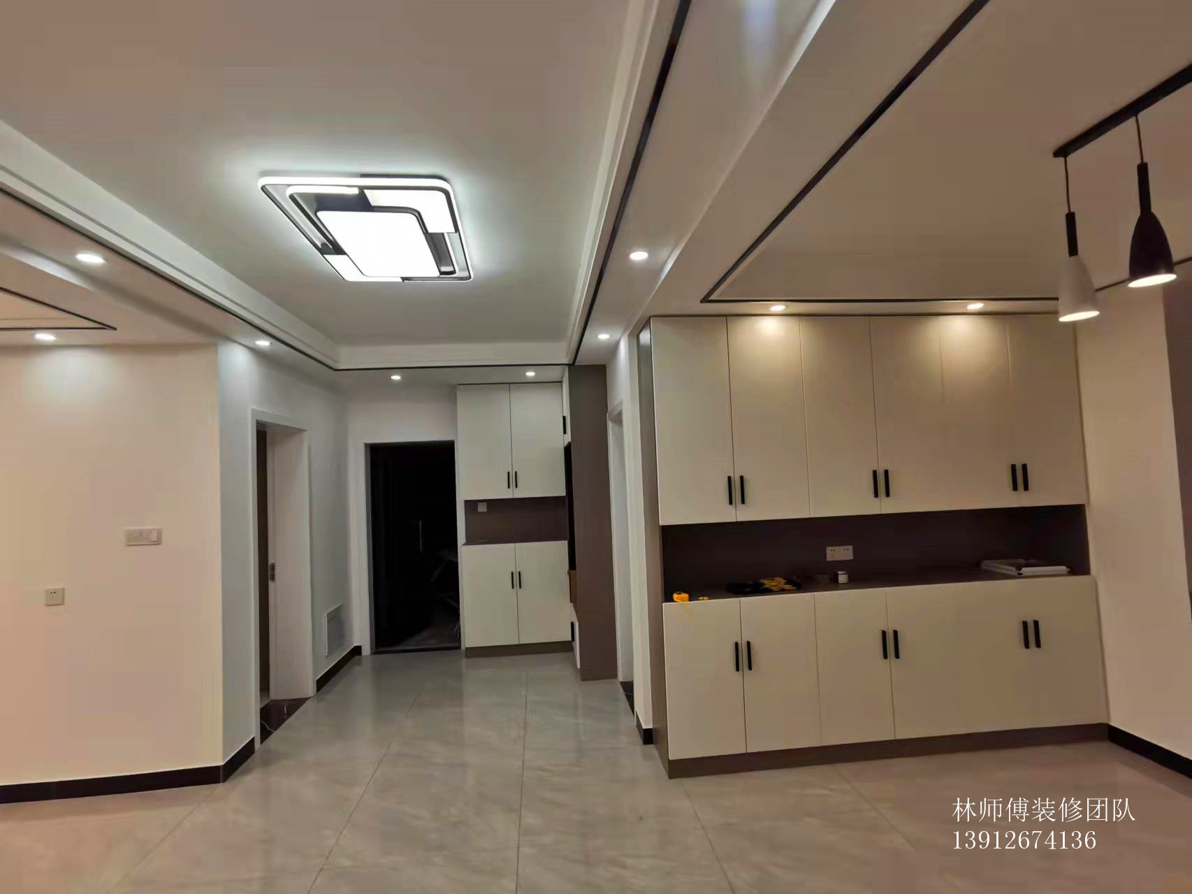 进门的空间一点也不局促,空间大,非常舒服。门边设计了到顶的橱柜,能收纳一年四季的鞋子。