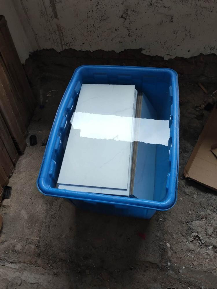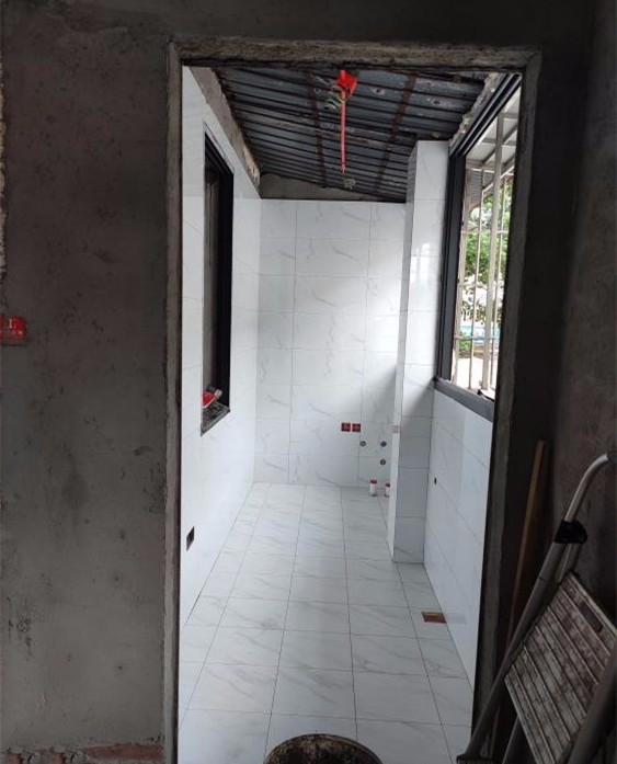 泥水师傅很用心,特别带了大桶泡砖,全片入水。而且做完工的砖面全部擦干净。那两个脚印是我踩的,因为我家用了侧排水地漏,想去看看位置对不对,师傅说里面两片可以踩,我就踩过去了,破坏了美感