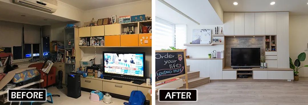 电视柜以柜体+开放层架设计,最大限度增加收纳,屋主女儿的奖杯、奖状也可以在此陈列。