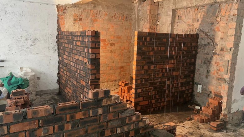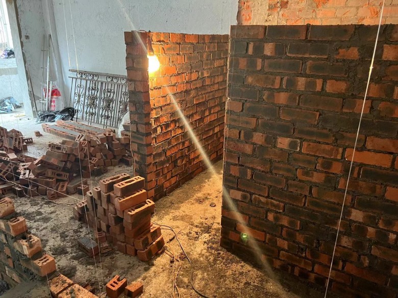 砌墙进度也很快了,三个房间都有人高了。第一次看惠安师傅砌墙,除了专业激光仪器,每堵墙都拉线以防砌歪,感觉砌墙就是他的艺术品,非常细致