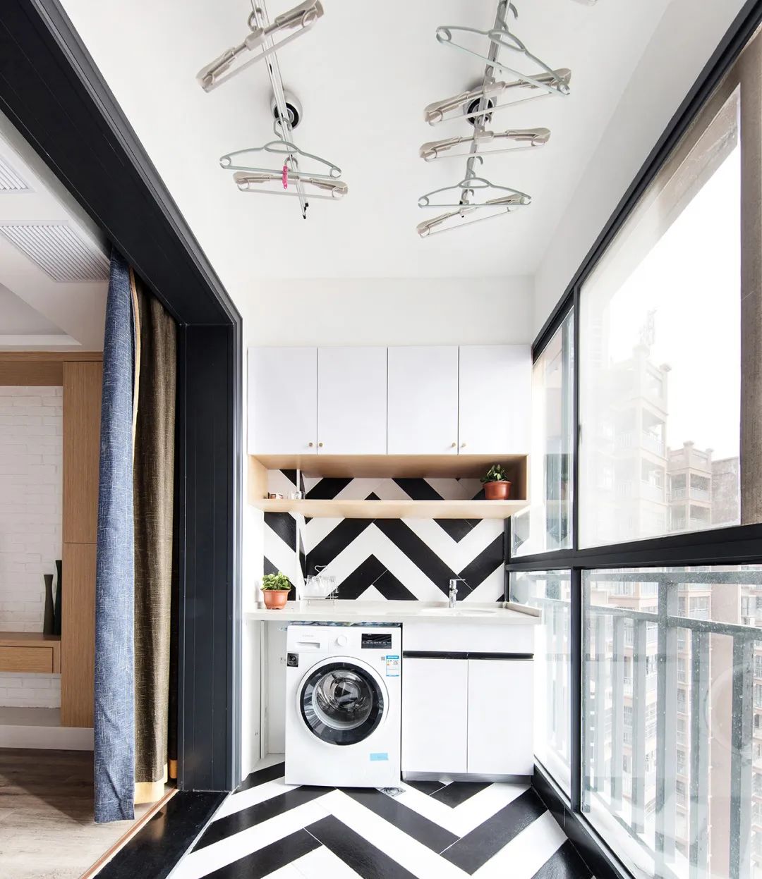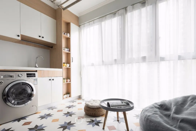 既然休闲和晾晒都想要,那么不妨一半做为休闲区,一半做为家务、晾晒区,这里收集了一些实例分享给大家。