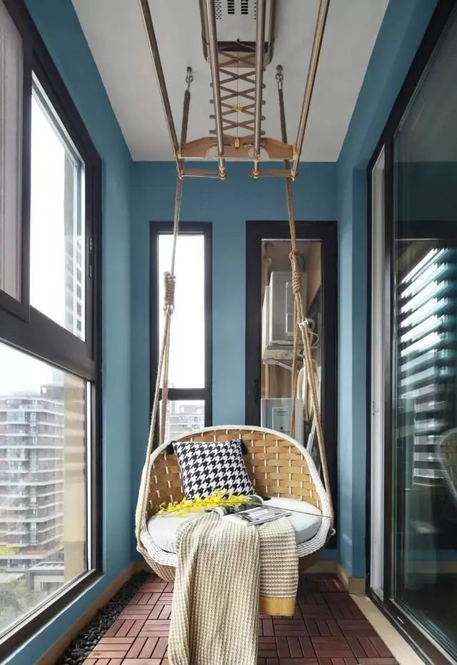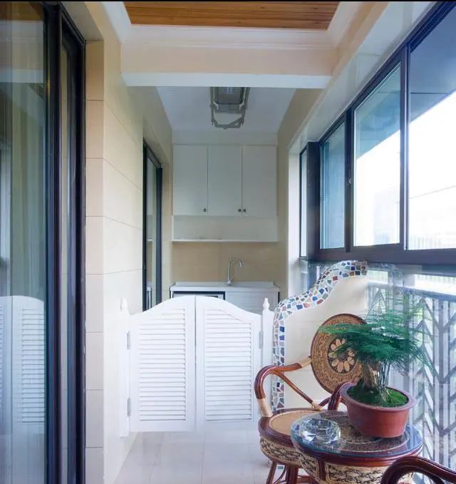 阳台只用来晾衣服放杂物,或只做休闲功能,对于很多人来说都不完美的,想要一个兼具休闲及晾晒功能的阳台,上面的办法都不错,但是还有就是,尽量做足收纳,毕竟干净整洁的环境才能带来休闲惬意的好心情,所以定制柜是不能少的。