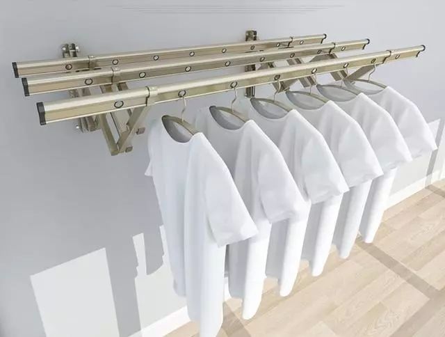 如果觉得晾衣架不够美观,可以选择隐形晾衣绳,在通风效果比较好的墙面上安装,需要的时候拉出来,不需要的时候可以收起来,也很方便,还不影响正常的生活。